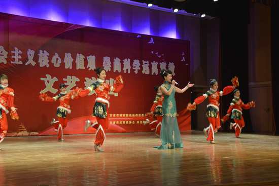 6月12晚,学校和甘肃省反邪教协会联合举办以“弘扬社会主义核心价值观 崇尚科学 远离邪教”为主题的宣传演出活动。省委政法委副书记、省政府防范处理邪教办公室主任金祥明,省科学技术协会党组书记、第一副主席陈炳东,省政府防范处理邪教办公室副主任梁正伟和我校党委副书记刘玉泉等及相关职能部门负责人、各学院党委副书记、辅导员、学生共400余人观看演出。