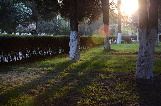 4月的师大,迎春馥郁的香味弥漫了整个校园。杨柳摇曳生姿,像一个多情的女子,尽情展现着青春的绚烂多姿;又像一位钟情的男子,搔首踟蹰,生生凝望着心上人前来的方向。点点心雨飞舞飘动,丝丝闲情融入景中。深蓝色的天空渐变渐浅,袅袅婷婷,绰绰约约,日光和暗影交相互映,朦胧中露出些清丽。莺啼碧柳弄春晴,日月之行休长然,青春共舞无厌倦,丁香无语向黄昏。师大,虽是“知术欲圆行须直”,却也是“似水柔情别趣多”。