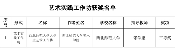 西北师大在活动中获得66项奖励,充分展示了学校艺术教育的丰硕成果,获奖等次和获奖数量为历届最高。其中,艺术表演节目类获一等奖7项、二等奖7项、三等奖3项;艺术作品类获一等奖6项、二等奖7项、三等奖12项;艺术实践工作坊获三等奖1项;艺术教育科研论文获一等奖7项、二等奖7项、三等奖7项;大学生艺术展演活动校长风采奖获奖2项;学校获“优秀组织奖”。