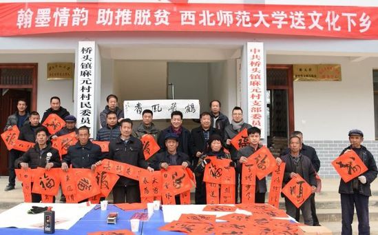 新春来临之际,西北师大组织开展“翰墨情韵·助推脱贫”送文化下乡活动,相关部门组织人员深入礼县6个帮扶村,走访慰问6名驻村干部,为困难党员群众送去1200余幅春联,也送去学校的牵挂、慰问和祝福。
